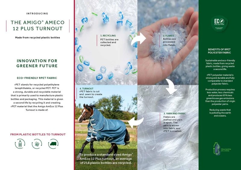 The Amigo AmECO 12 Plus turnout utilizes rPET fabric made from 218 recycled plastic bottles to giv you Horseware quality while reducing your carbon footprint. Part of Horseware Ireland’s new ECO collection, a variety of pieces with incredibly strong sustainable credentials.