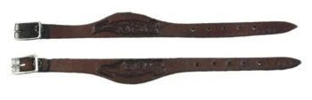 Hobble straps. Flared and tooled. Keeps stirrup leathers closed at bottom for safety. 1/2″. Sold in pairs.