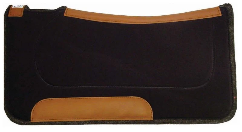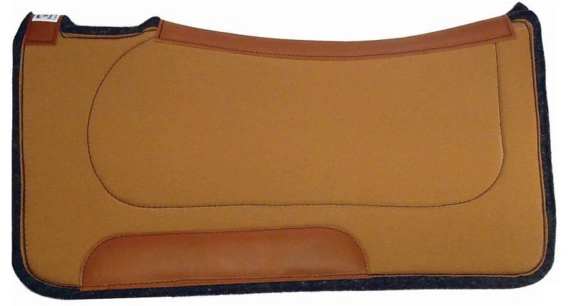 The Contoured Ranch Pad is made from “Ranch Tough” 1” Wool felt covered with a durable cotton canvas top and distressed leathers. The contoured spine has a wither relief notch and is reinforced with distressed leather.