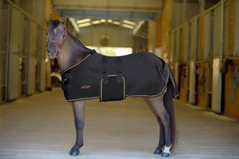 This lightweight poly cotton sheet for your miniature horse provides durable protection against dirt, biting insects, harmful UV rays, and is ideal for the milder weather of Fall and Spring. This sheet features include a lined chest, padded wither for mane protection, adjustable elastic leg straps, tail flap, and double locking front chest and belly band.