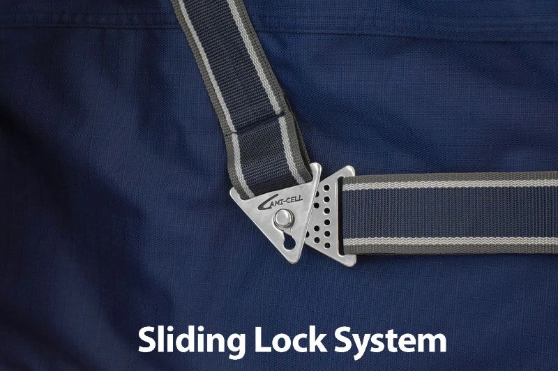 The Lami-Cell Pro-Fit Turnout is made from 1200 Denier rip-stop that’s waterproof and breathable. The patent pending insert at the withers is engineered to stretch when the horse bends his neck, helping to relieve pressure at the withers, allow more freedom of movement, prohibit hair loss, and conform to the horse’s natural neck line, all for more overall comfort. The improved extra high shoulder gussets are wider and angled closer to the natural structure of the horse’s shoulder, allowing more freedom of movement while running and preventing hair loss and discomfort. The surcingles are reinforced with elastic to provide extra give when needed, and with the easy-to-use sliding secure lock system, you don’t have to worry about them coming loose during turnout.