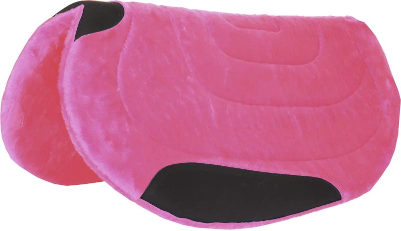 Princess Fleece Round Barrel Pad with high quality Princess Fleece on top and bottom makes for a soft and sumptuous barrel pad. 1″ felt center adds the right amount of protection for good withered barrel horses. Completely hand sewn. Finished with black suede wear leathers and wither reinforcement.