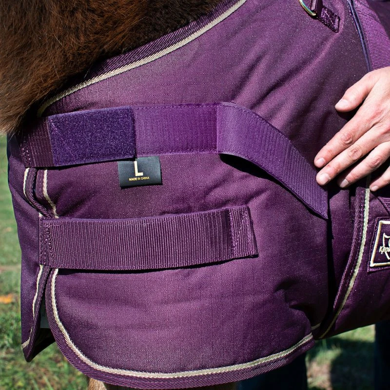 Roustabout is a front open blanket featuring a belly band with a double