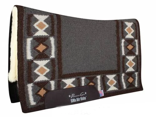 Developed from the horse’s back up, the Comfort-Fit SMx Air Ride Saddle Pad is contoured to follow the curve of the horse’s spine. As a result, the pad locks in place on the horses back, allowing full movement. The SMx 3/4″ Air Ride core absorbs shock and improves saddle fit for ultimate equine comfort. The Air Ride core is made of a unique material found in the protective gear of professional human athletes for absorbing shock while allowing air flow to the skin, creating a natural cooling system that lowers the horse’s body temperature and slows the rate of fatigue. Wool lining.
