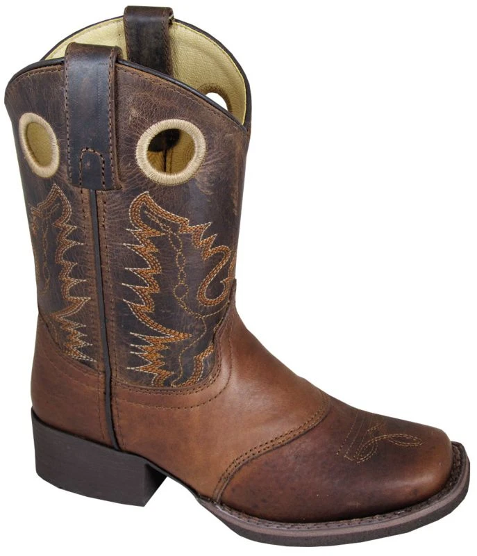 Your kid will look charming in these Smoky Mountain Kids Luke Square Toe Boots. Featuring brown leather upper, these boots are perfect to showcase him in a distinct western outfit. The beautifully designed square toe adds more elegance to these boots while the stockman 1 1/4” heel enriches these boots with western styling. On the other hand, the durable and long-lasting rubber sole provides a firm grip for your kid to confidently stride on any surface. Team up these boots with any modern outfit for a perfect western outlook.