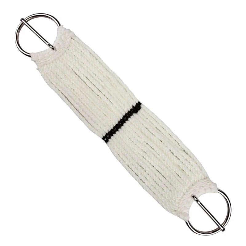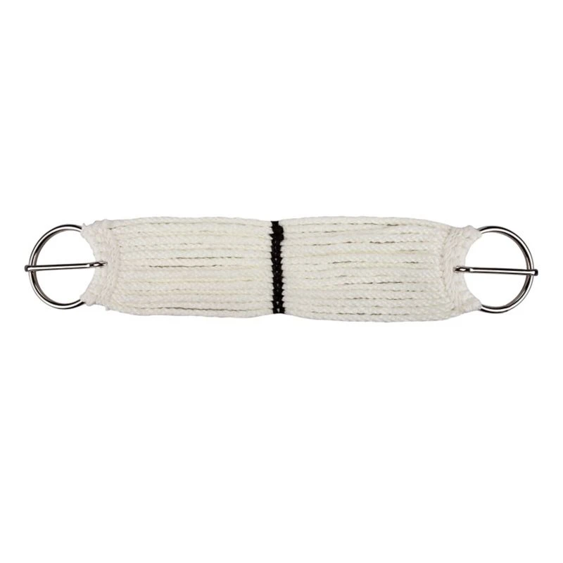Comfortable and durable, this 15 strand cinch is made of a soft poly-rayon blend, with a center woven bar, 3” nickel ring, and nickel tongue buckle.