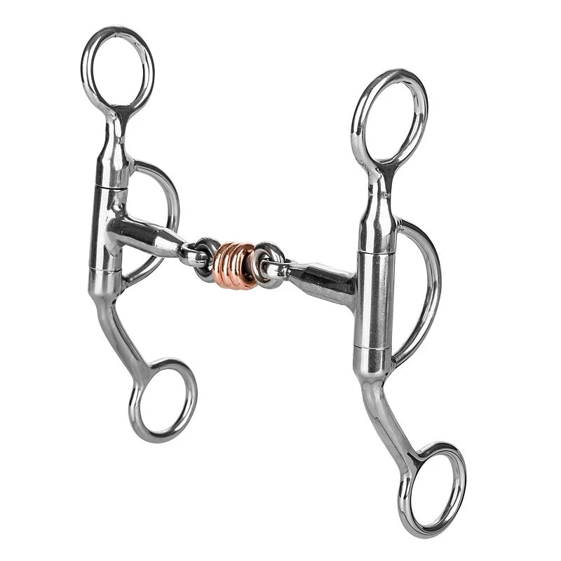 SS Wire Cheeks Bit, SS 6 1/2” Cheeks, 5” SI 3pc Mouth w/Copper Inlay & Rings
