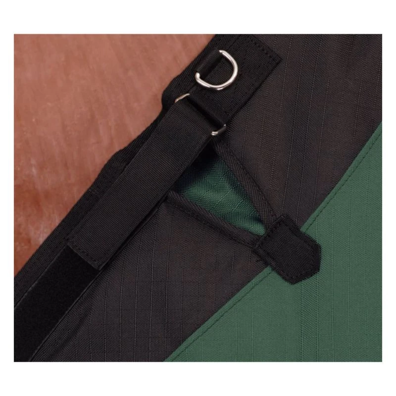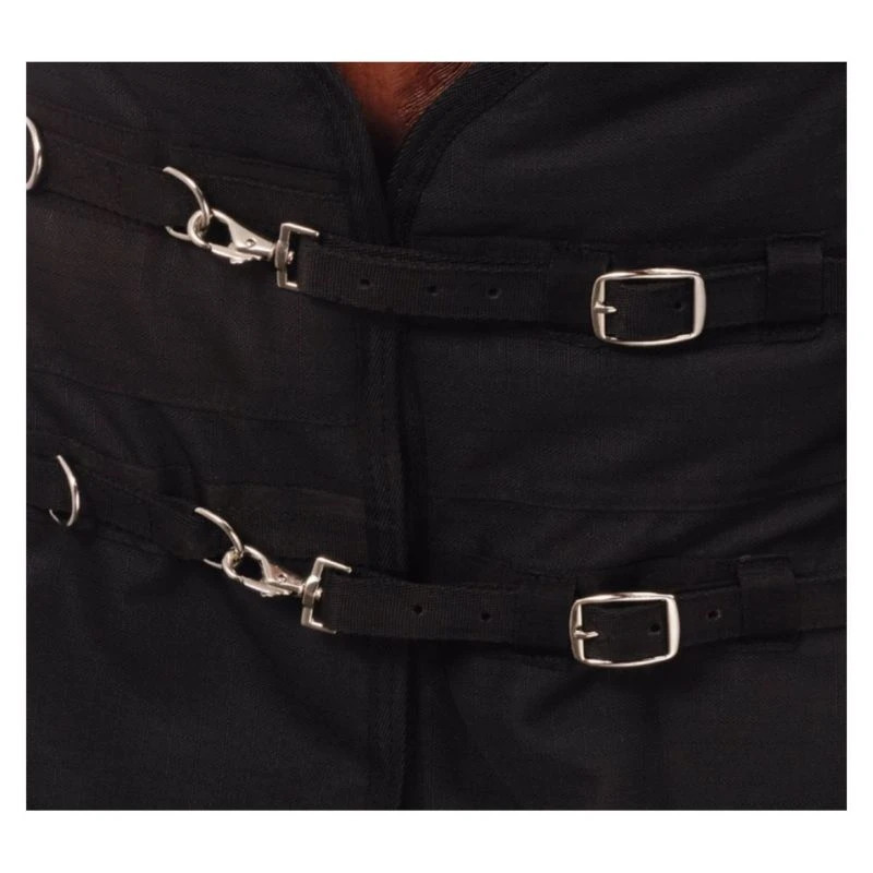 Featuring the popular Snuggit neck adjustment for a more custom fit, the strap allows a small gusset to be opened and closed to adjust the fit of the blanket to your horse’s neck and shoulder, while the double buckle front with snap closures allows more freedom of movement.