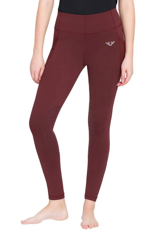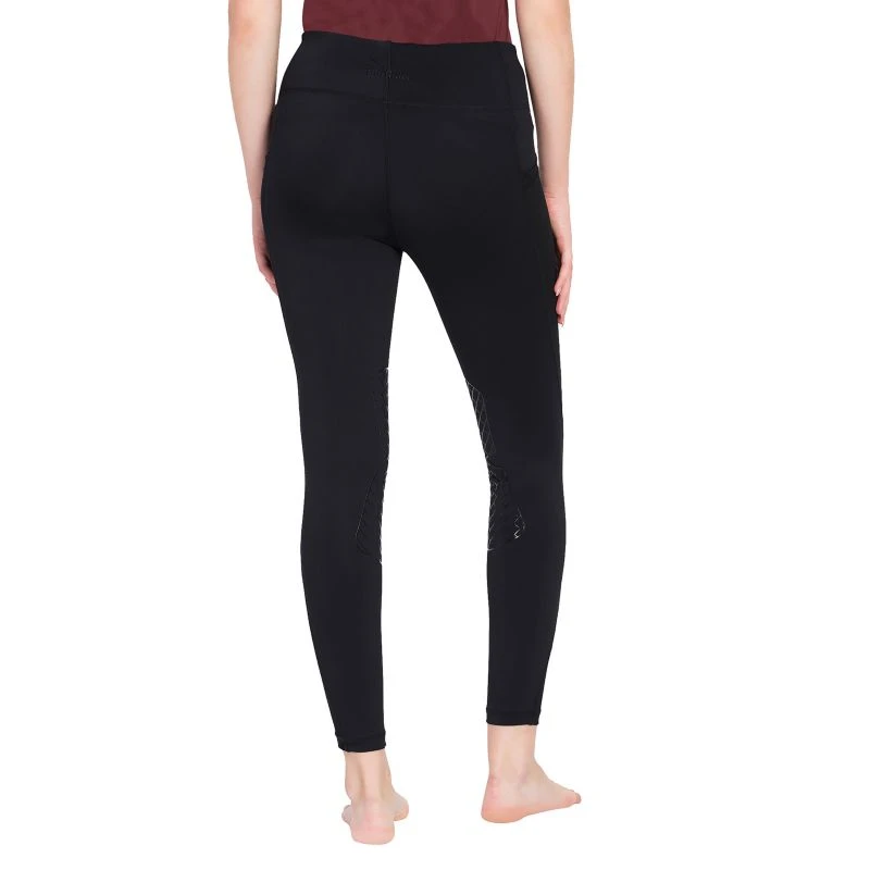The flattering TuffRider Ladies Minerva EquiCool Tights are great for summer schooling! Soft, comfortable, breathable, and infused with our EquiCool technology, these tights allow for moisture wicking and additional UV protection, so you’ll have no problem being out in the heat riding or working. Our newest features include, mesh pockets and contoured sock bottoms made from mesh, which ensure the additional comfort and convenience of these tights. The silicone knee patches also give these tights an extra grip in the saddle.