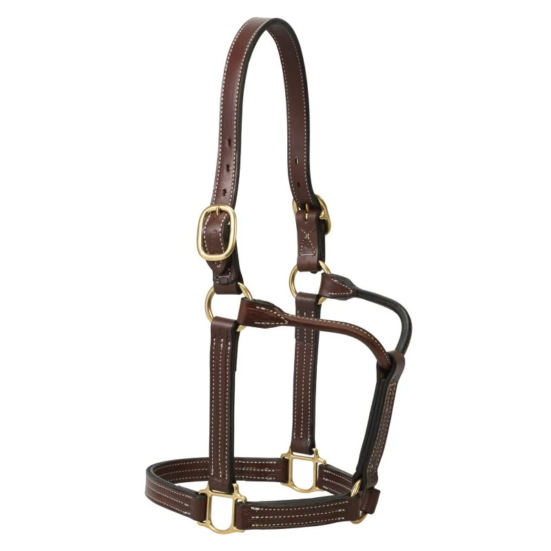 rounded throat latch with a fixed chin ring. Non-rust solid brass hardware.